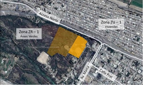 El sector en el que se emplaza el terreno, corresponde al límite oriente del centro de Vallenar, lugar caracterizado por la presencia de vegas dada la cercanía al río Huasco, donde tenía lugar antiguamente la estación de trenes de la comuna por Av. Matta. La ubicación del terreno favorece el acceso a equipamiento y servicios básicos de la ciudad por su cercanía al centro.