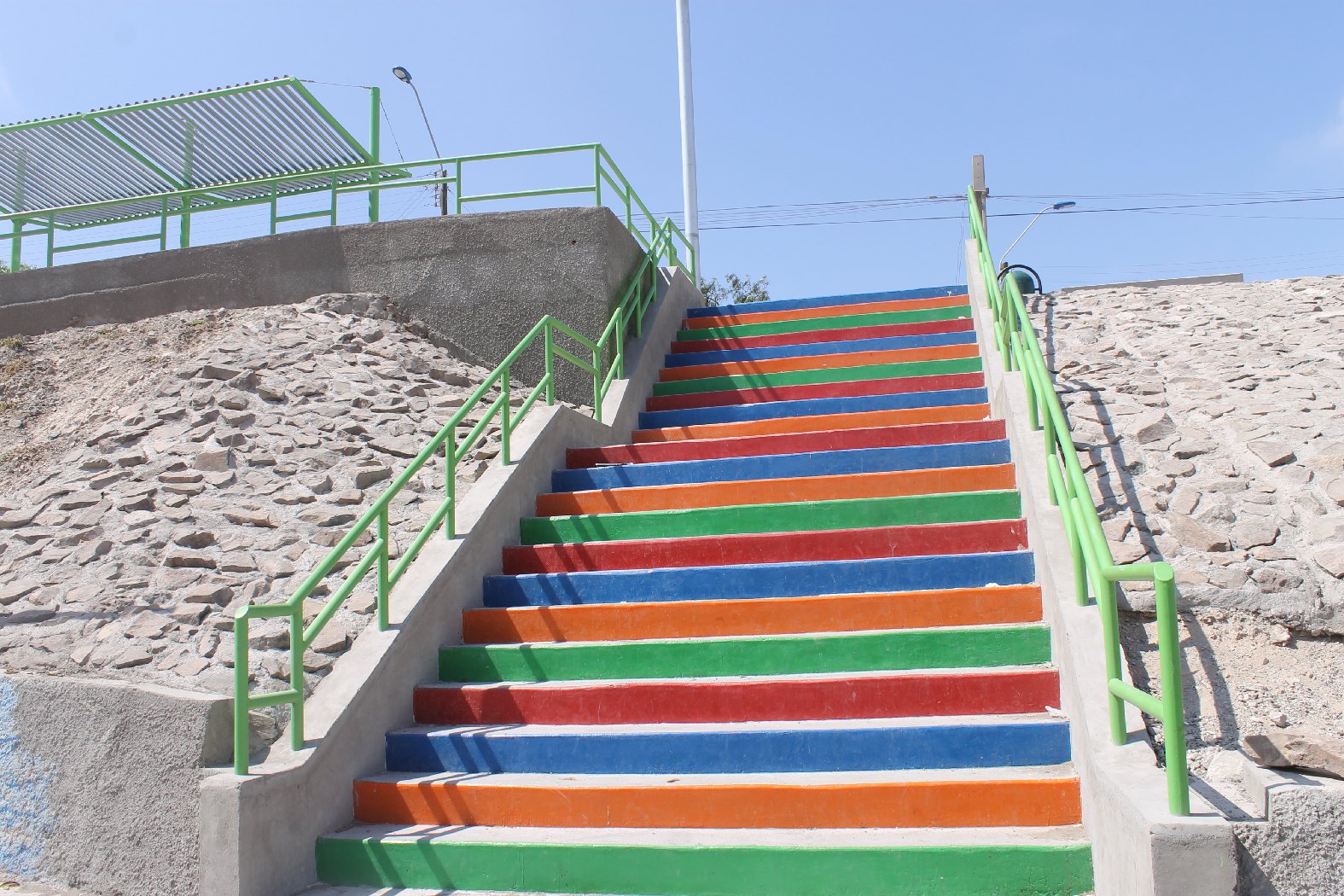 Los trabajos de mejoramiento consideraron sombreaderos, construcción de nueva escalera y rampas de acceso, veredas de hormigón, áreas verdes, luminarias, escaños y basureros. Destaca además que la nueva infraestructura construida da respuesta a la conectividad universal, permitiendo el desplazamiento fluido de personas que presentan algún grado de discapacidad.