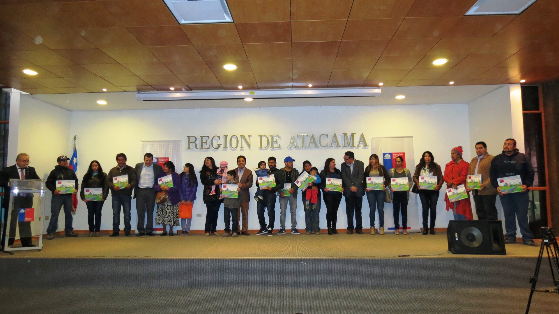 El Gobierno de Chile, a través del Ministerio de Vivienda y Urbanismo, hizo entrega de 2.500 millones de pesos en 198 subsidios habitacionales del Plan de Reconstrucción para la Región de Atacama a familias damnificadas de las comunas de Copiapó y Tierra Amarilla, cuyas viviendas fueron severamente dañadas o totalmente destruidas durante el evento hidrometereológico del 25 de marzo de 2015.