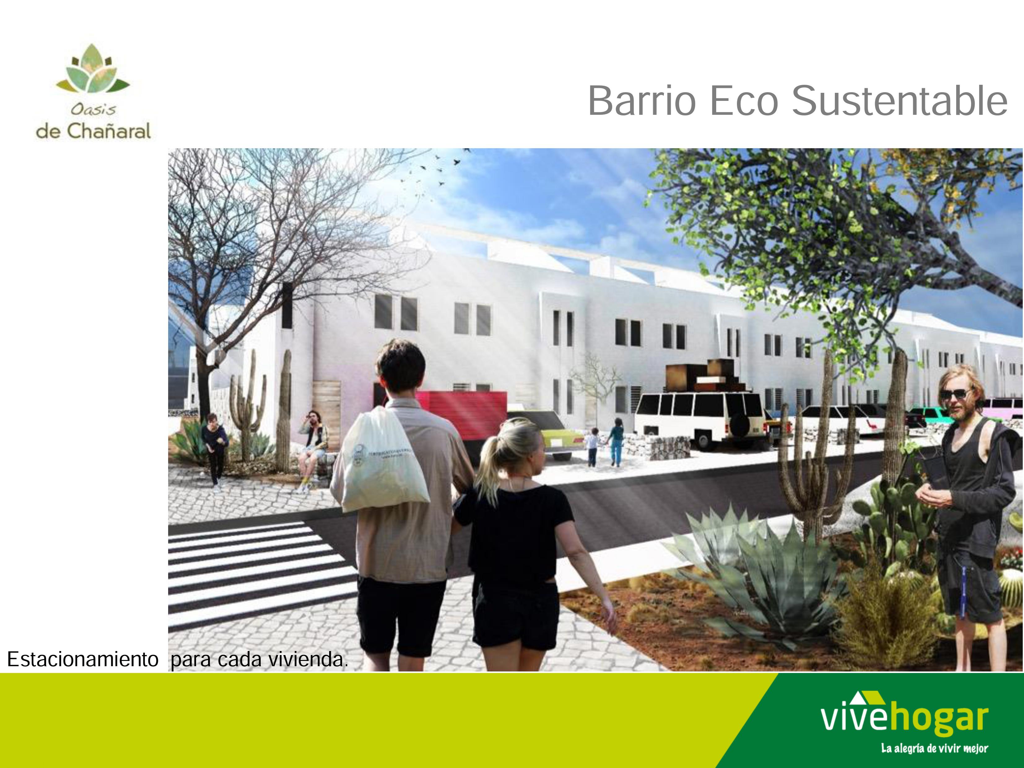 Las viviendas tienen una superficie de 55 m2, 3 dormitorios, 1 baño, living-comedor, cocina, logia, y un alto nivel de terminaciones, lo que además se potencia con el concepto de barrio ecosustentable, ya que se incluyen dentro del diseño paneles solares fotovoltaicos, calefactores solares, huertos familiares, planta de tratamiento de aguas permitiendo que la economía familiar sea vea favorecida por el menor gasto, principalmente, en luz, agua y gas.