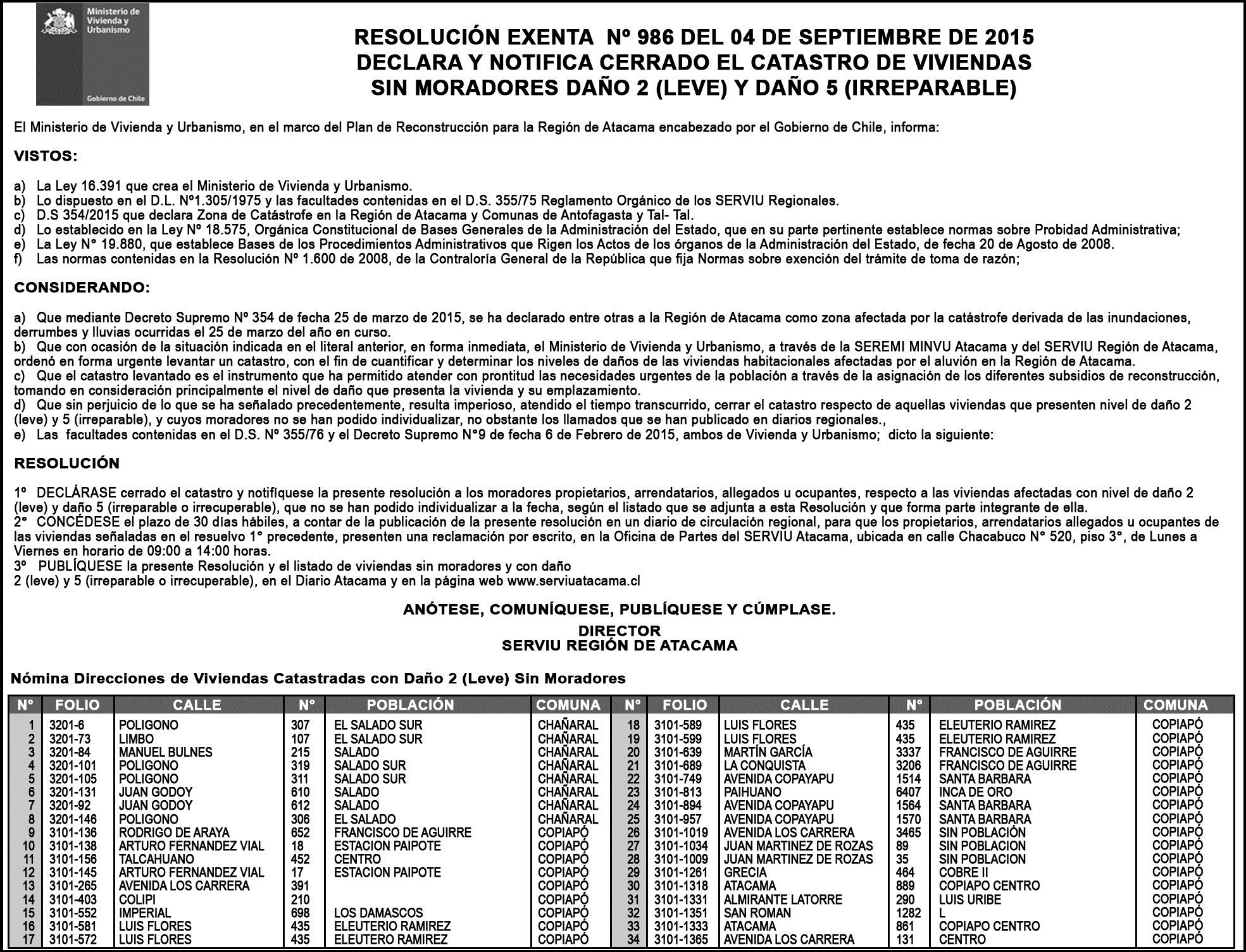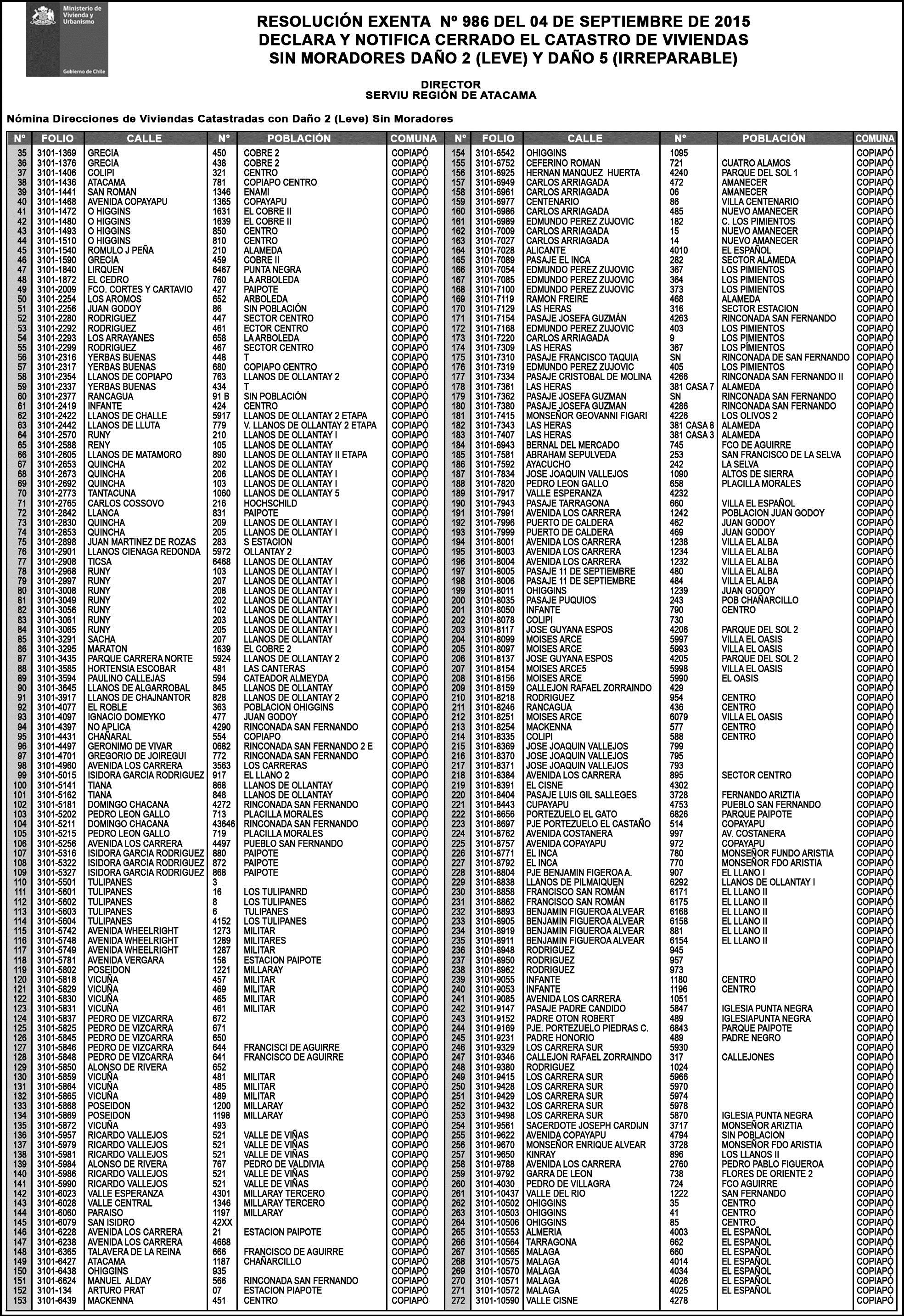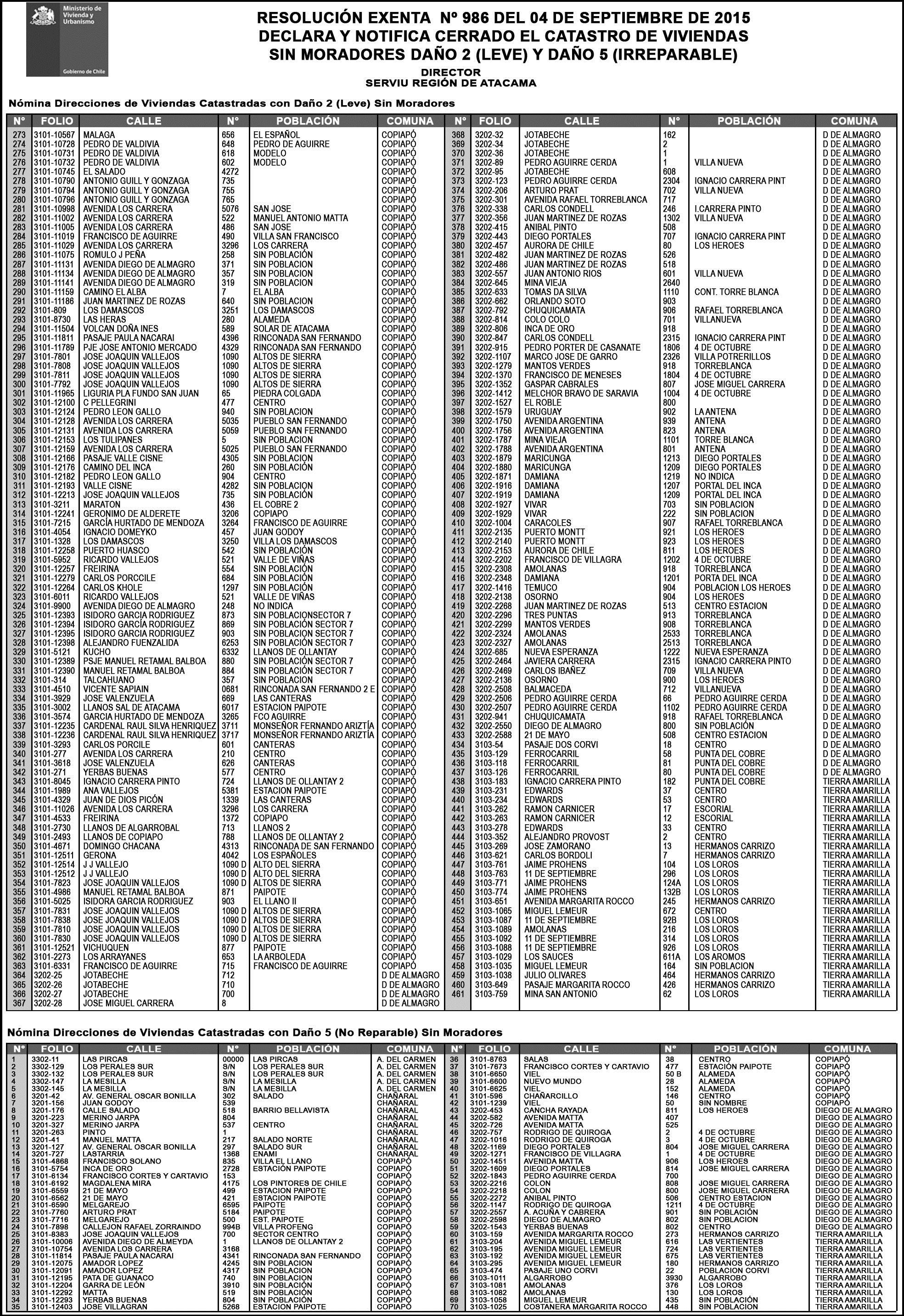MINVU cierra Catastro de Viviendas dañadas por aluviones en Atacama