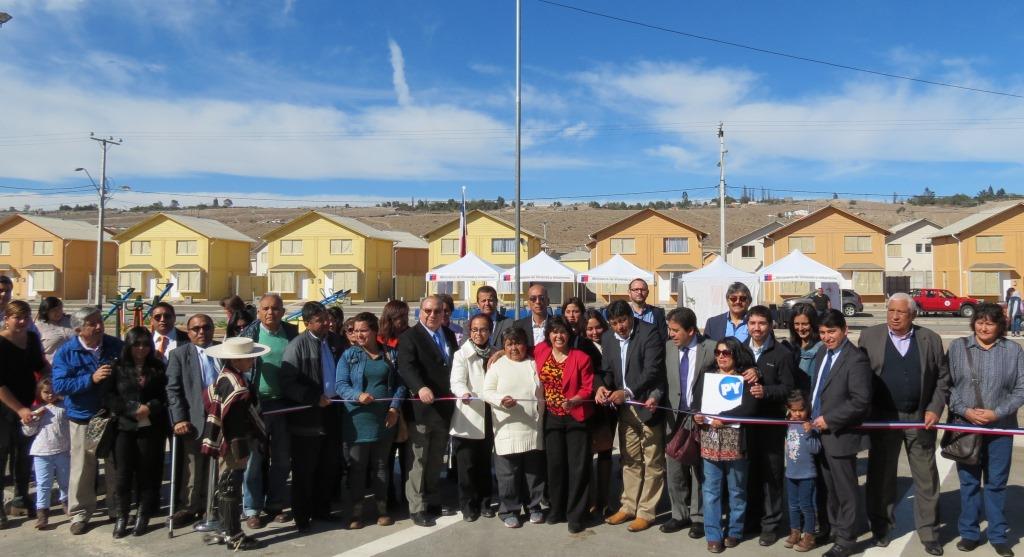 Junto al Intendente de la Región de Atacama Miguel Vargas; el SEREMI de Vivienda y Urbanismo Rodrigo Ocaranza; el Director SERVIU Atacama Patricio Escobar; el Alcalde de Vallenar Cristián Tapia; y el Gerente de Proyectos Inmobiliarios de PY Federico Cuming, los beneficiarios cortaron la cinta tricolor dando este importante paso por cumplido.