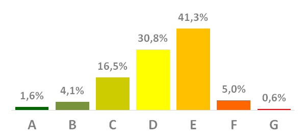 A la fecha, y a lo largo de todo el país, cerca de 30 mil viviendas ya cuentan con etiquetas. De las viviendas evaluadas, la gran mayoría (94,4%) ha logrado calificación E o superior (ver siguiente gráfico), la cual corresponde al estándar térmico establecido hoy en la OGUC. Asimismo, el 22% ha obtenido calificaciones iguales o superiores a la letra C, que corresponde a viviendas con estándar de eficiencia sobresaliente.