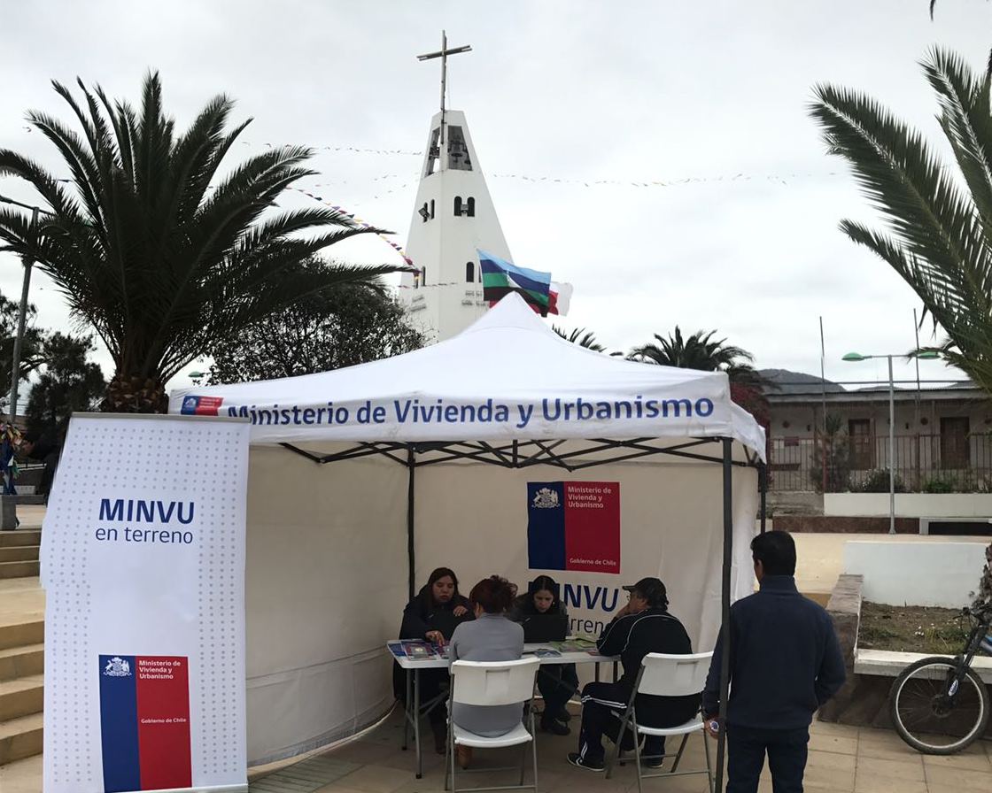 En una jornada doble, funcionarios del Serviu Atacama y de la Delegación Provincial del Serviu Huasco, instalaron un stand del sistema Minvu Conecta en la Plaza de Armas de Freirina y Huasco; donde atendieron, recientemente, a más de un centenar de vecinos de dichas comunas.