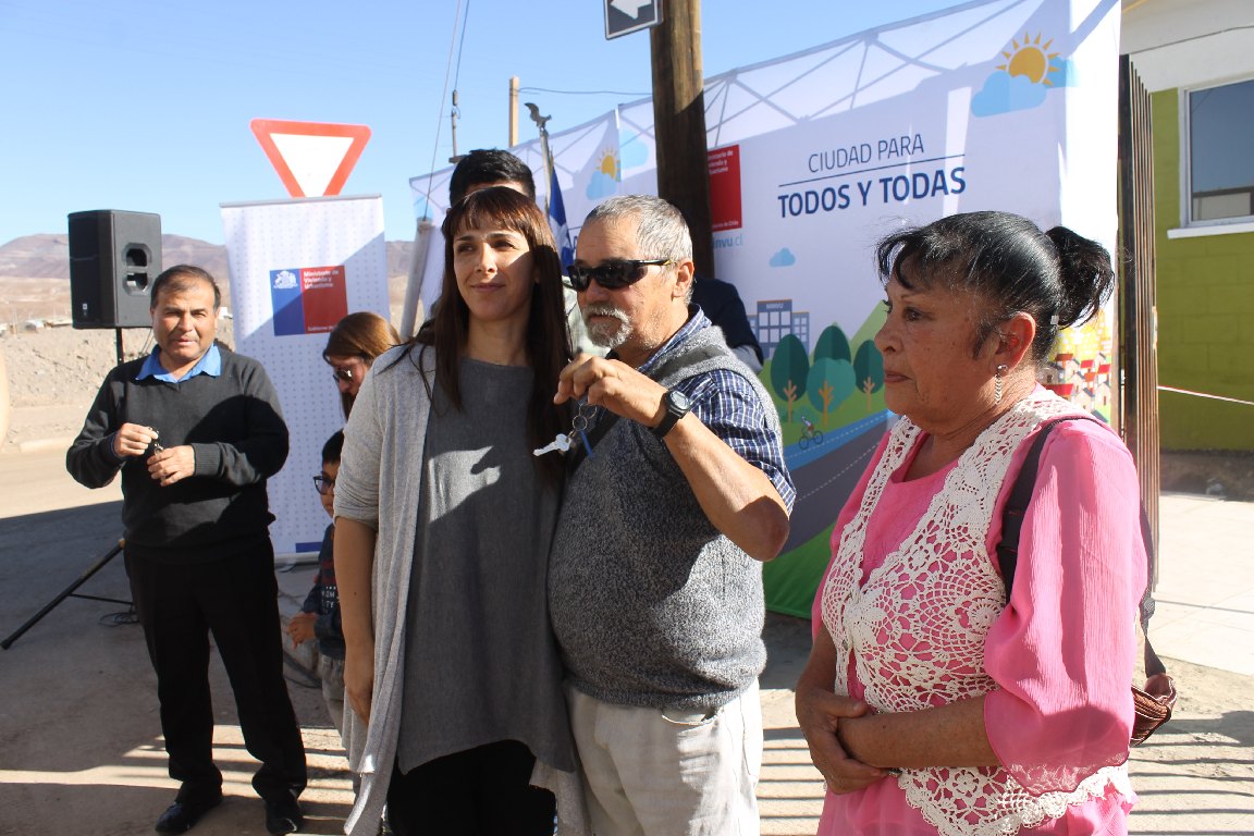En la ceremonia, Daicy Navea, Nolvia Rojas, José Agurto, y Katherine Naranjo, recibieron de manos de las autoridades las llaves de sus casas reconstruidas, tras sufrir las consecuencias de los aluviones de 2015.