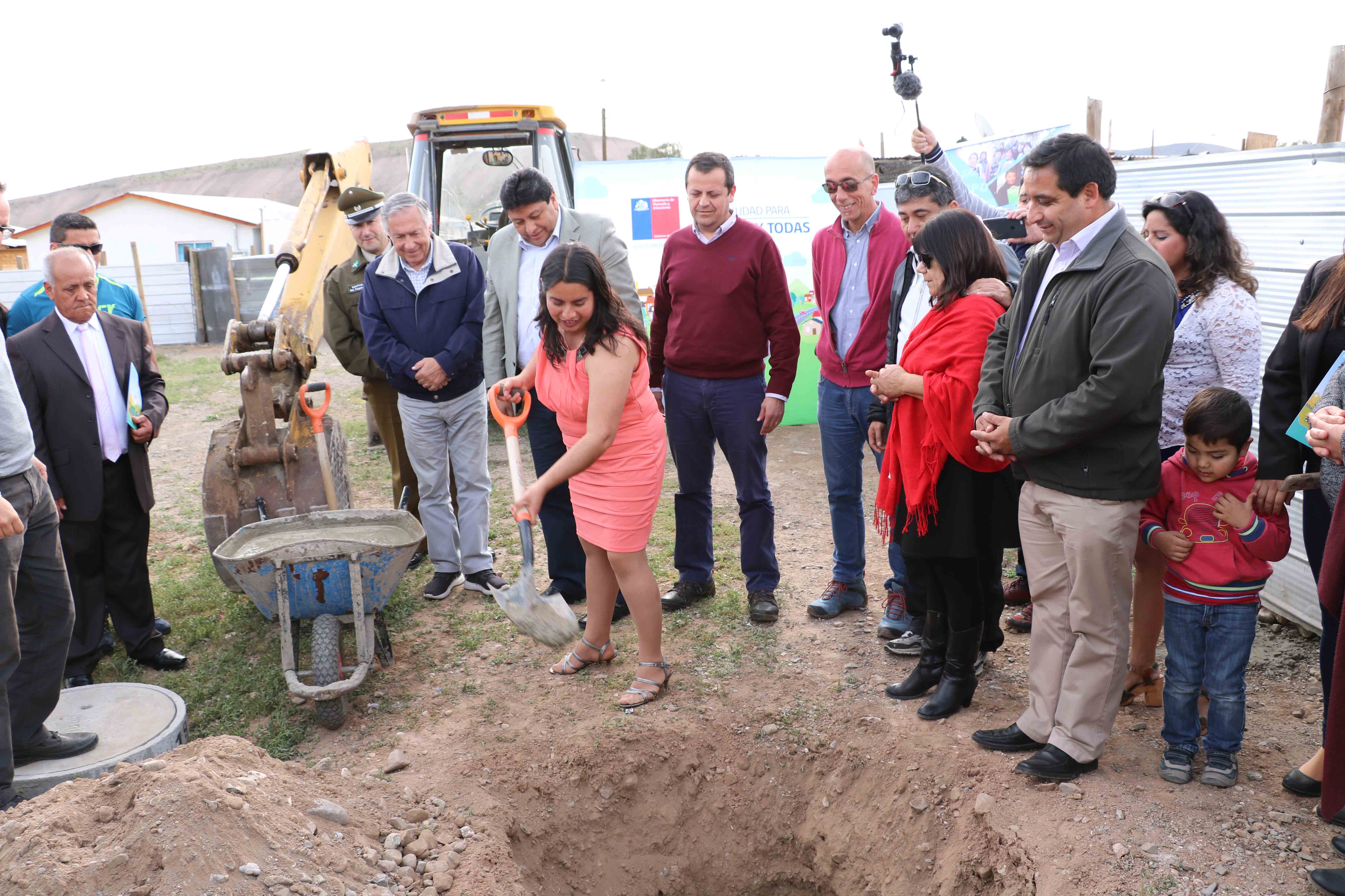 "Tenemos sentimientos de agradecimiento y felicidad porque los subsidios que anhelábamos tanto se han podido concretar con la primera piedra de nuestras casas", fueron las palabras de la Presidenta del Comité Las últimas Esperanzas, Fabiola Godoy, momentos después de tomar la pala y dejar el primer hormigón del conjunto habitacional en sitio propio que comenzó su construcción en la localidad rural de Domeyko, en la comuna de Vallenar.