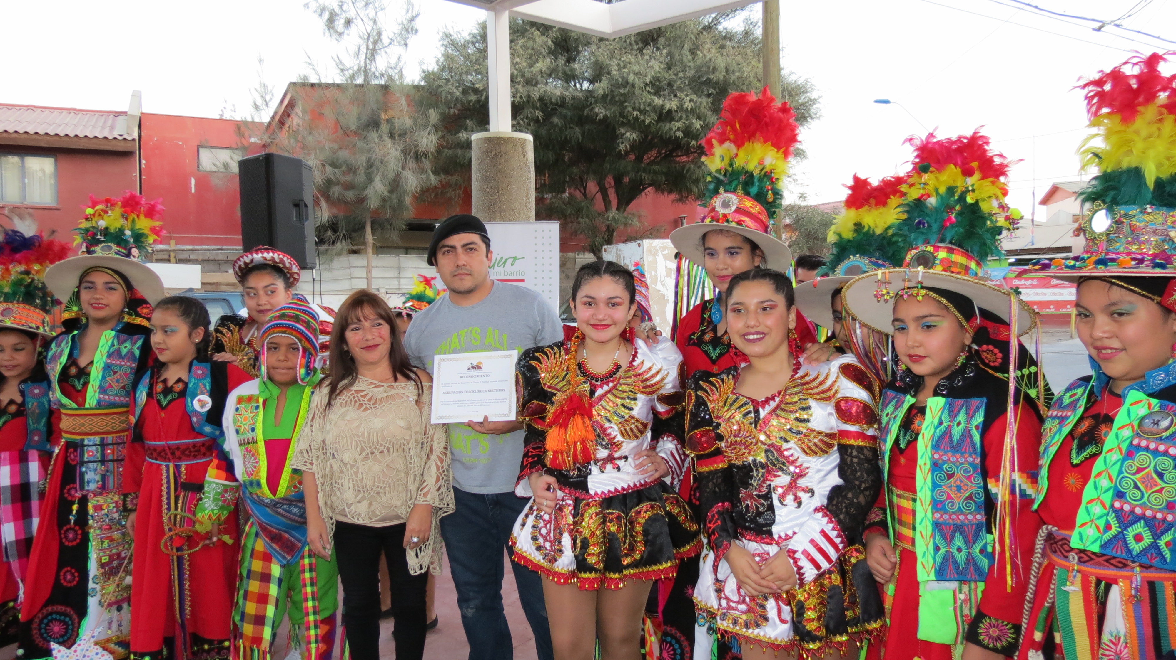 Evelyn Olmos, Guillermo Gallardo e integrantes de la Agrupación Folclórica Kulthury. |