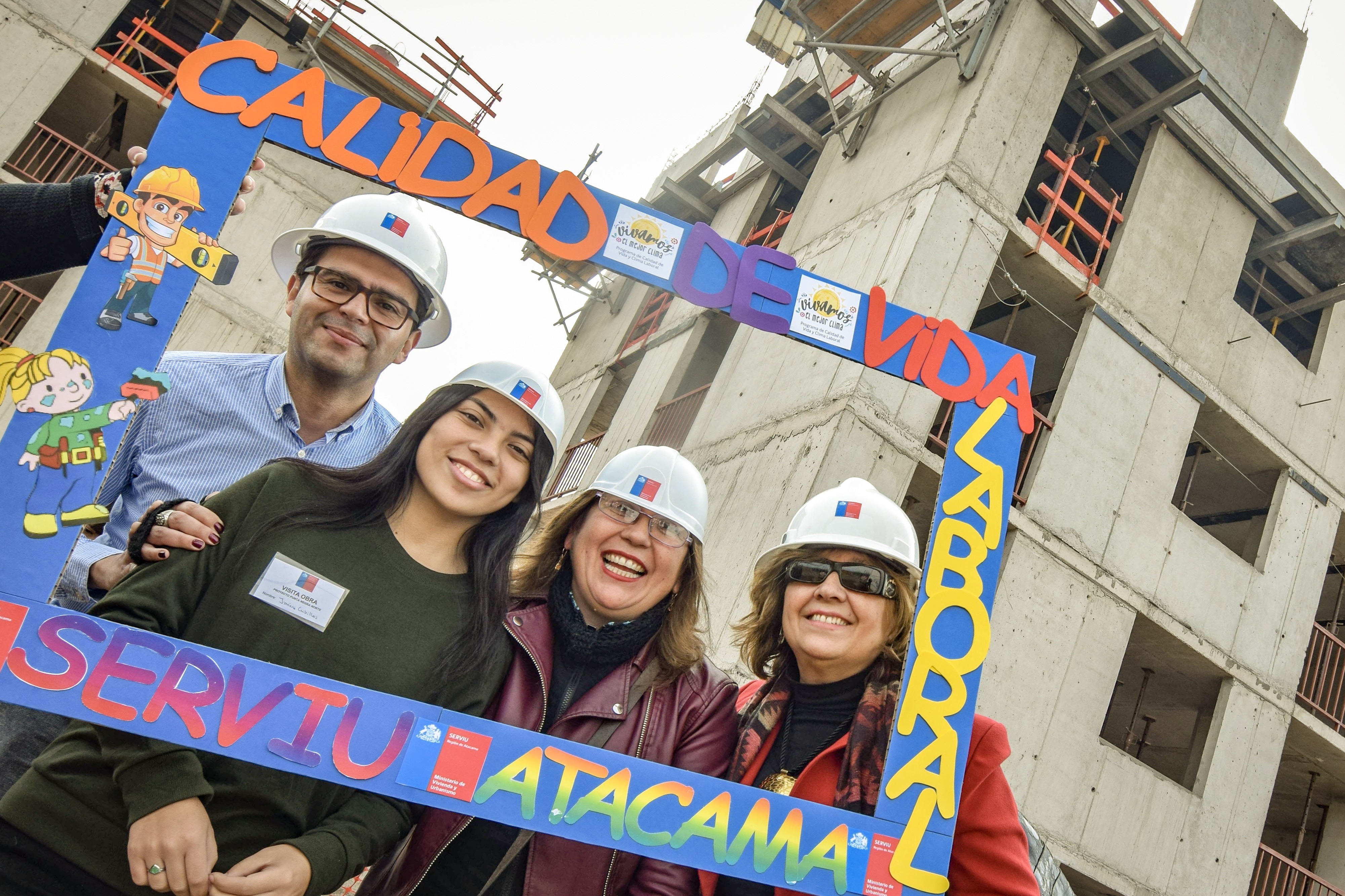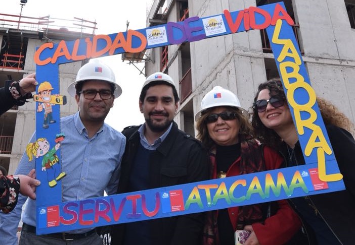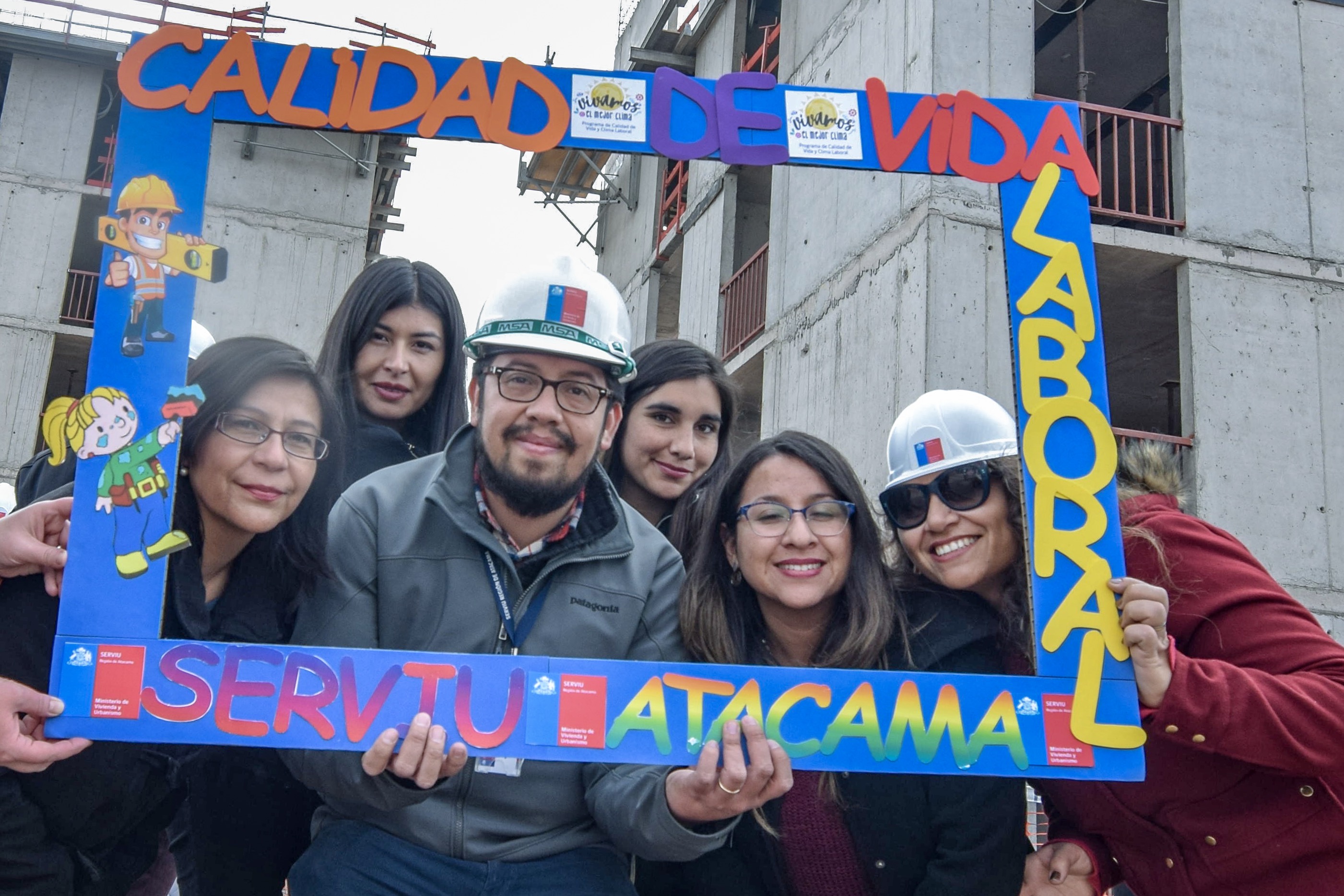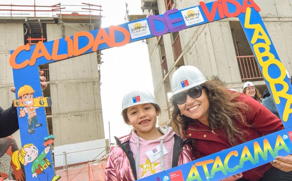 Una maravillosa jornada vivieron hijos y sobrinos de los funcionarios del Serviu Región de Atacama, durante la visita a obra del proyecto de 220 departamentos "Punta Negra Norte", en Copiapó; enmarcada en el Plan de Calidad de Vida Laboral, temática Conciliación de Vida Personal y Familiar con el Trabajo. Los pequeños pudieron conocer un poco más de las labores que se realizan en el Serviu Atacama al recorrer esta obra ejecutada por la empresa constructora LOGA y financiada el Ministerio de Vivienda y Urbanismo del Gobierno de Chile.