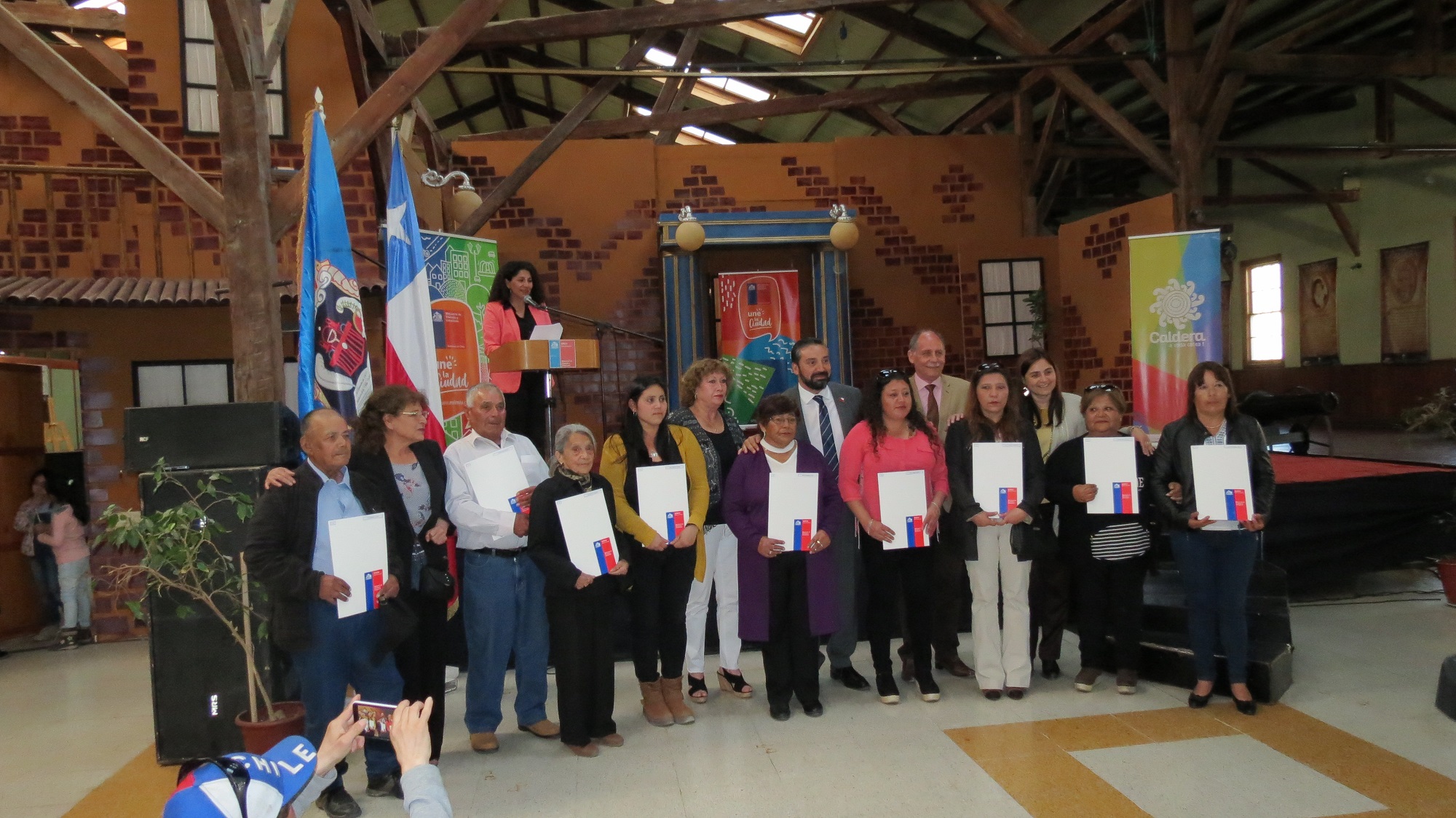 Los beneficiarios de los comités habitacionales "Alborada Joven" y "Caminando a un sueño" (actual Villa "Padre Negro") podrán postular a nuevos subsidios del Ministerio de Vivienda y Urbanismo del Gobierno de Chile. En el Centro Cultural Estación de Caldera, se efectuó la ceremonia de entrega de 147 títulos de dominio a 39 familias del conjunto habitacional "Alborada Joven" y a 98 de "Caminando a un Sueño", actual Villa Padre Negro; beneficiarios del Fondo Solidario de Elección de Vivienda del Ministerio de Vivienda y Urbanismo.