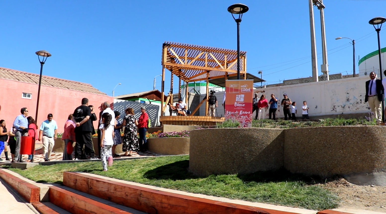 · La obra se construyó por medio del Programa Quiero Mi Barrio, en un proceso participativo con el municipio local y la comunidad. Lo que antes fue un sitio eriazo bajo el estanque de distribución de agua, ahora es un renovado espacio público con áreas verdes, sombreaderos, zonas de descanso, iluminación y juegos para los más pequeños.