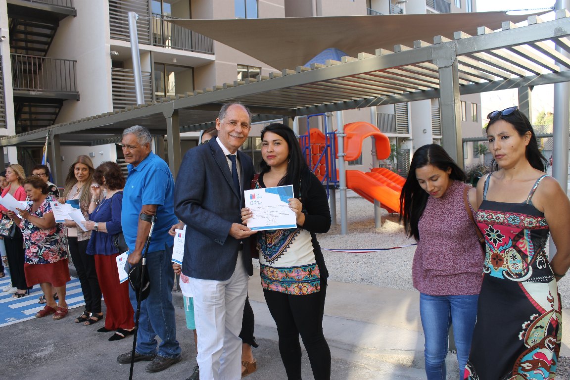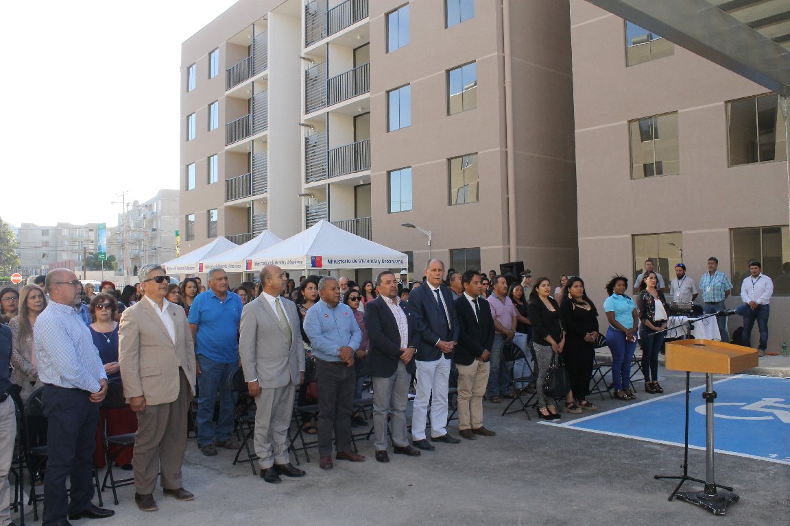 · Las felices familias recibieron las llaves de su vivienda definitiva en el "Condominio Nuevo Sol", ubicado en Leónidas Pérez; en un barrio integrado, cercano a colegios, centros comerciales y con locomoción colectiva a la puerta. Frente a una de las áreas verdes del nuevo conjunto habitacional, el intendente Francisco Sánchez, la seremi de Gobierno María Francisca Plaza, el seremi Minvu Antonio Pardo, el alcalde de Copiapó Marcos López, el presidente del CORE Javier Castillo y el director del Serviu Atacama Rodrigo Maturana; encabezaron la inauguración del "Condominio Nuevo Sol", de 260 departamentos, construido a través del Programa de Integración Social y Territorial del Ministerio de Vivienda y Urbanismo.