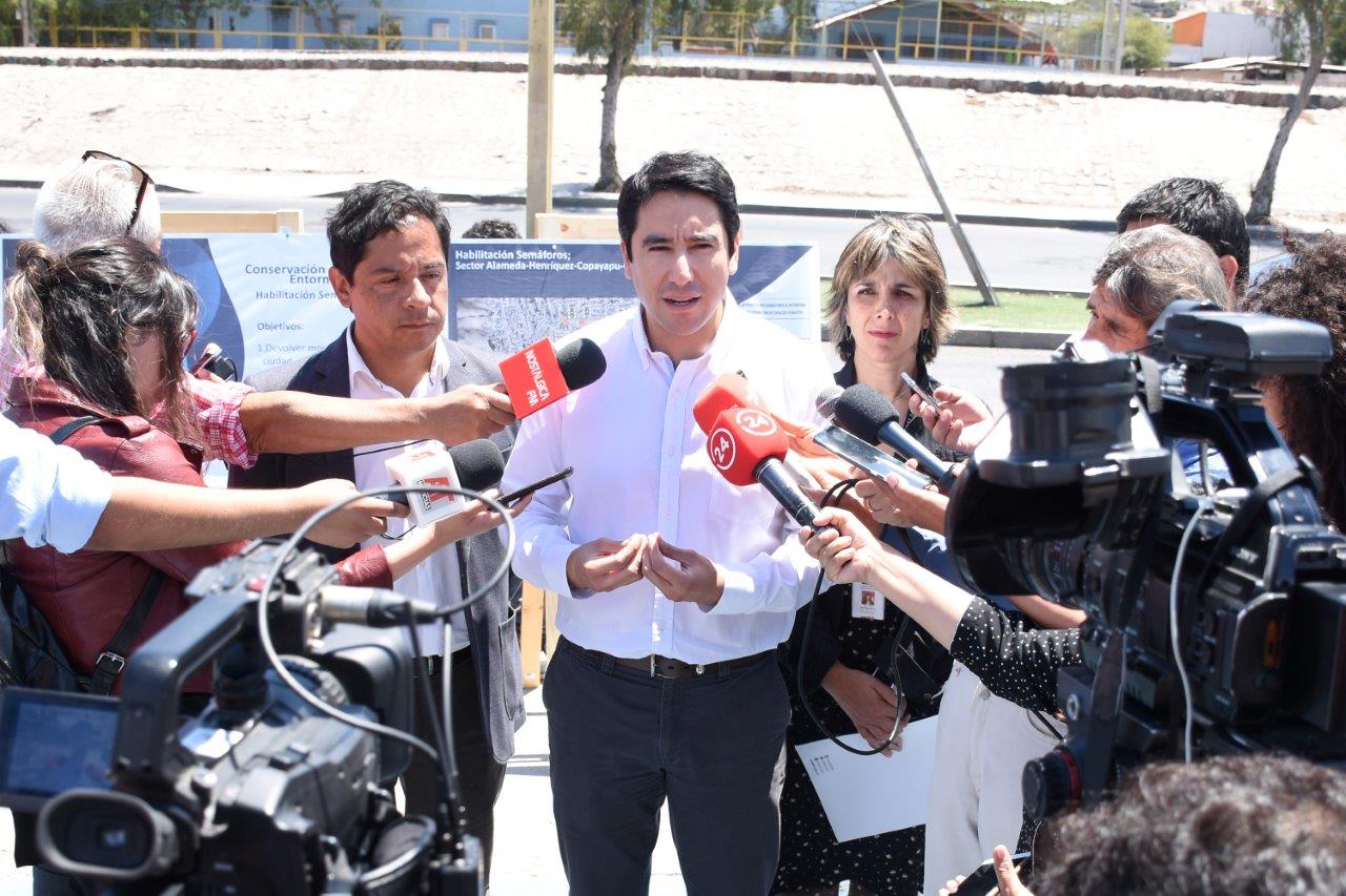 "Estamos comenzando un trabajo que ha pedido el Presidente Piñera, que es ir recuperando la normalidad, y naturalmente, la seguridad en todas las ciudades, y eso pasa por reponer infraestructura que se ha visto dañada con motivo de las manifestaciones cuando han sido en forma violenta. En Copiapó tenemos 28 intersecciones que han sido siniestradas, y a partir de ello, el Ministerio de Vivienda y Urbanismo, como anunció hace pocos días el Ministro Monckeberg, destinó 90 millones de pesos que van a ser implementados en la Región de Atacama, y particularmente en la comuna de Copiapó para reparar esta infraestructura que sirve perfectamente para desarrollar una convivencia vial como corresponde y de manera segura".
