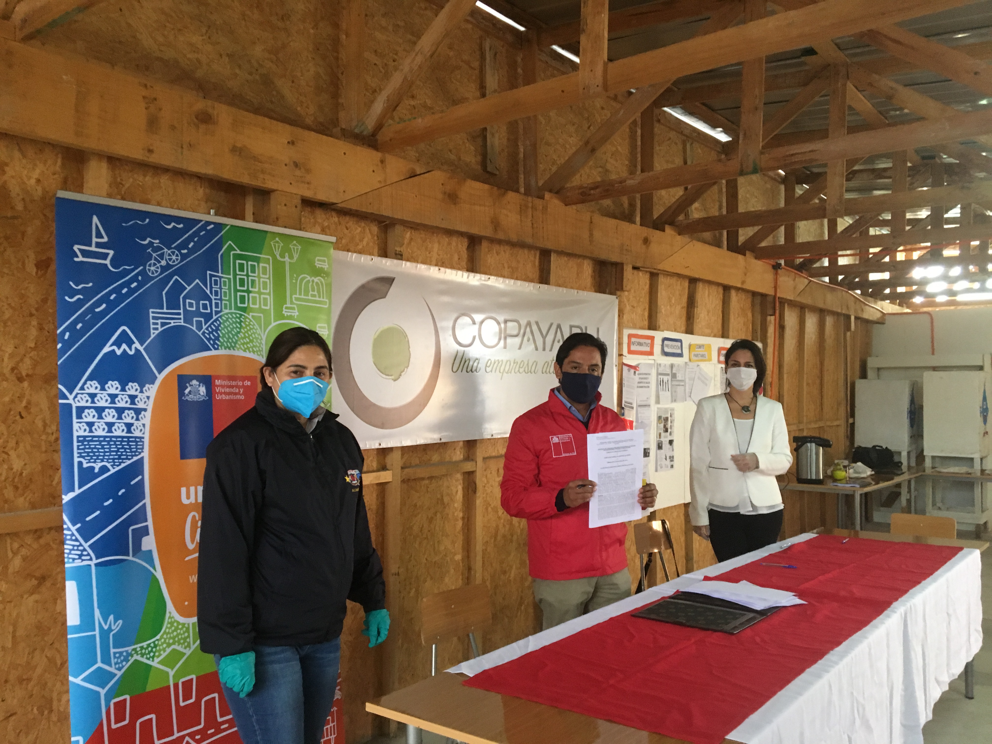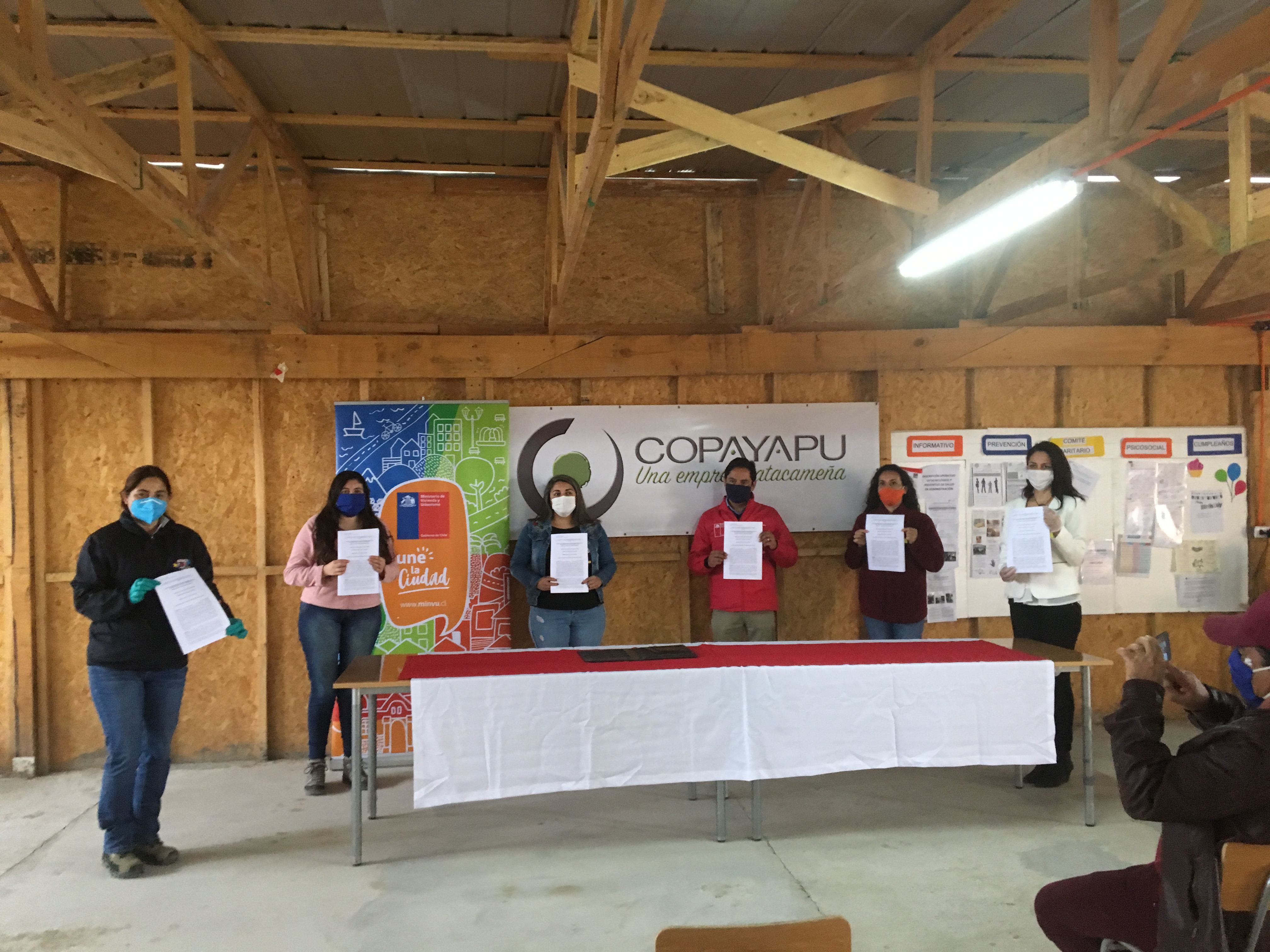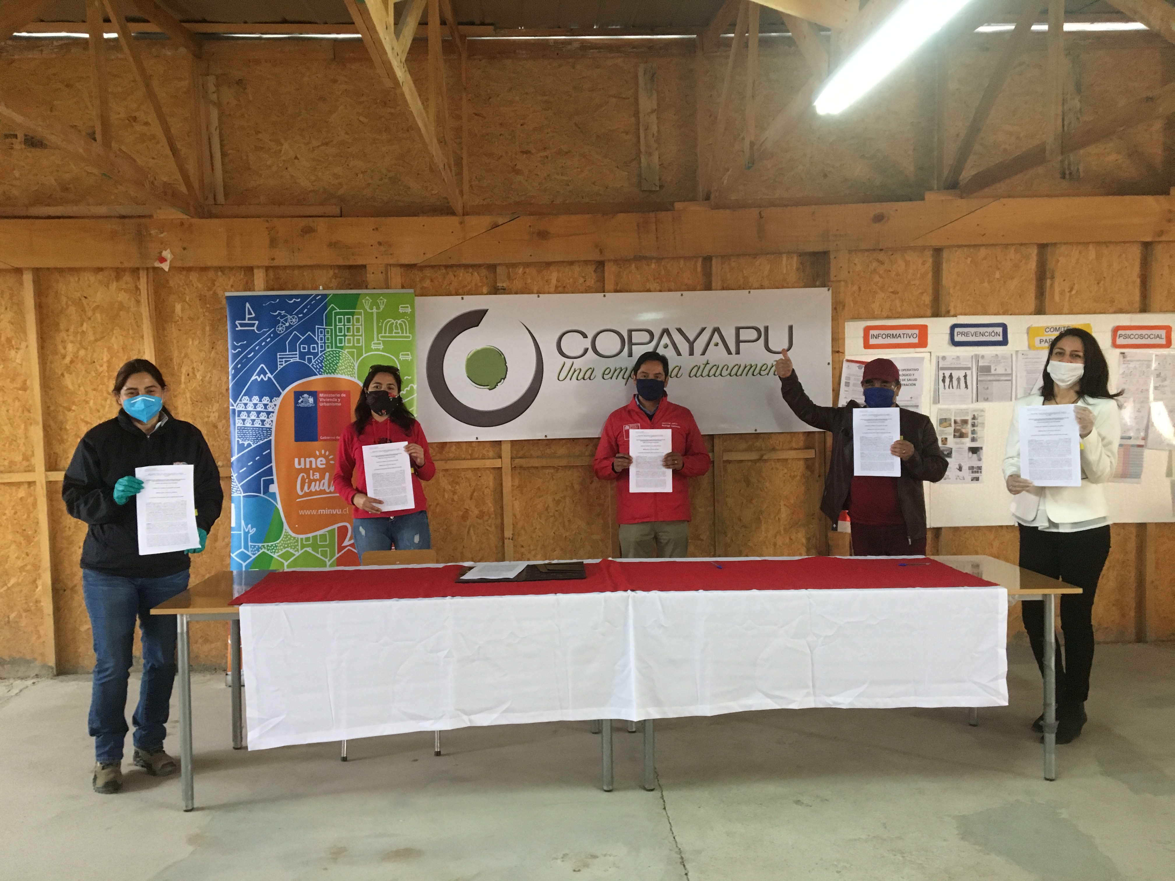La Inmobiliaria Copayapu se adjudicó el nuevo contrato de construcción de 198 viviendas sociales del Ministerio de Vivienda y Urbanismo, luego de la quiebra de la Constructora Loga. En el terreno ubicado en el sector Canal Beagle y Los Aromos, el Director del Serviu Atacama, Rodrigo Maturana Fuentes; la representante legal de la Inmobiliaria Copayapu, Sol Pardo; y dirigentes de los cinco comités habitacionales que integran el proyecto DS49 Minvu "Copa de Agua"; en compañía de la Alcaldesa de Caldera, Brunilda González; firmaron los contratos de re-contratación de las obras, luego de la declaración de insolvencia de la Constructora Loga.