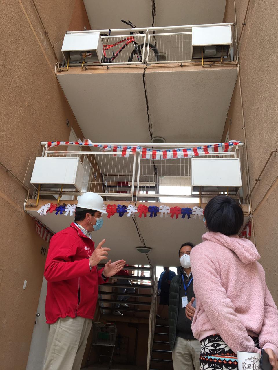 "Nuestro servicio realizó varios estudios estructurales de estas torres, producto de los reclamos que nos presentaron, dando como resultado que se deben ejecutar obras de refuerzo a la caja de escaleras, donde apreciamos las separaciones que se ven aumentadas por el movimiento telúrico? Pero es muy importante destacar que no tenemos una deficiencia estructural de las torres, no estando en riesgo de colapso", subrayó Rodrigo Maturana.