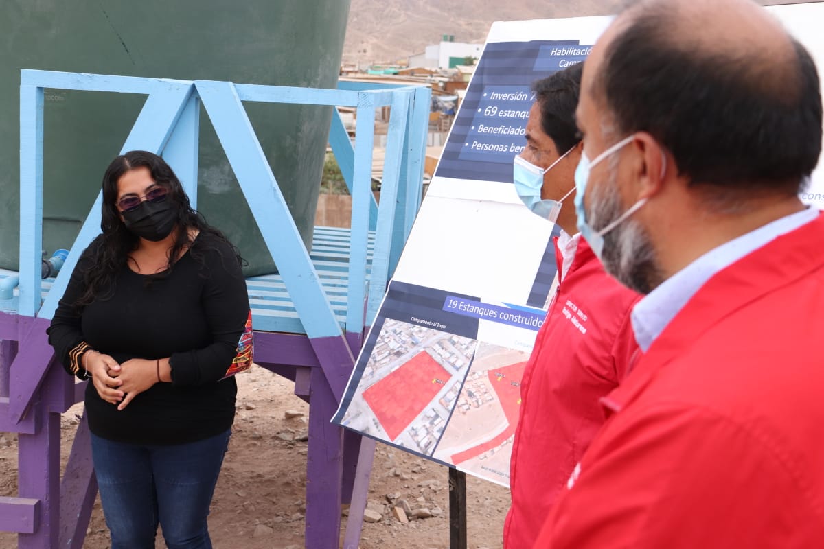 "Esta solución viene a enfrentar el problema de la falta de agua potable en los campamentos producto de la pandemia. Cabe recordar que esta pandemia nos ha afectado en distintos aspectos, por eso es clave que a partir del 2 de diciembre se logra el acuerdo entre el MINVU y el ente TECHO para poder realizar la construcción de 69 habilitaciones primarias de contención de agua mediante estanques. Entonces, el día de hoy, estamos favoreciendo con este proyecto a 572 hogares con 1.600 personas que van a poder ser parte del beneficio del agua potable en sus campamentos. Estamos muy contentos, son más de 400 personas que viven aquí en Lomitas II que van a tener acceso a estos estanques", expresó la autoridad.