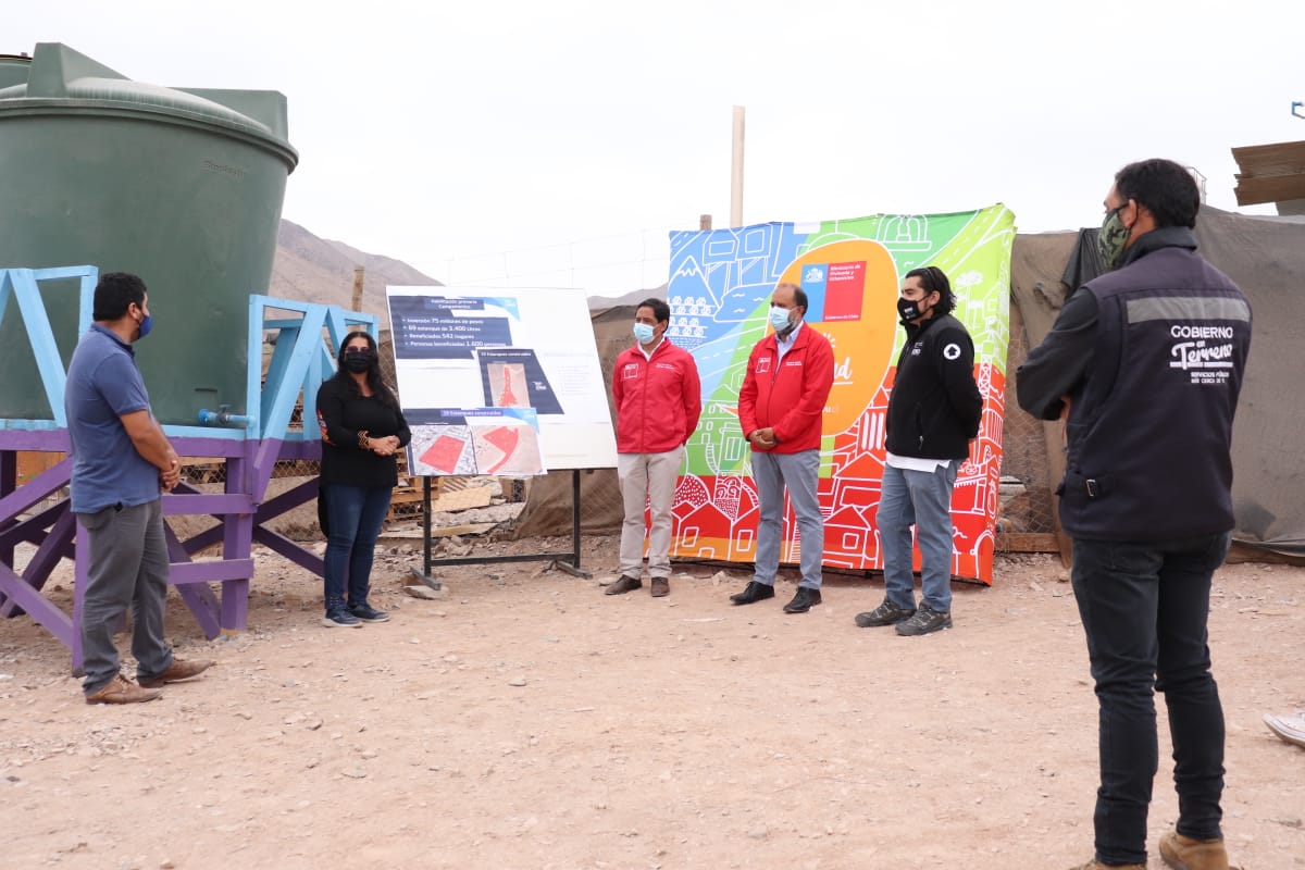 El Gobernador (s) y el Director SERVIU, fueron acompañados por la presidenta del campamento Las Lomitas II, Marjorie Valencia; y por el Director Atacama de TECHO, Claudio Lazo.