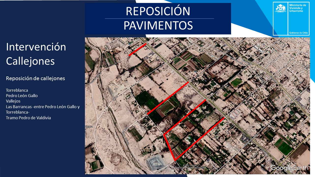 En Copiapó, la intervención se concretará en los callejones Torreblanca, Pedro León Gallo, Vallejos, Las Barrancas entre Torreblanca y Pedro León Gallo, y en un tramo de Pedro de Valdivia, todos desde Copayapu al río.