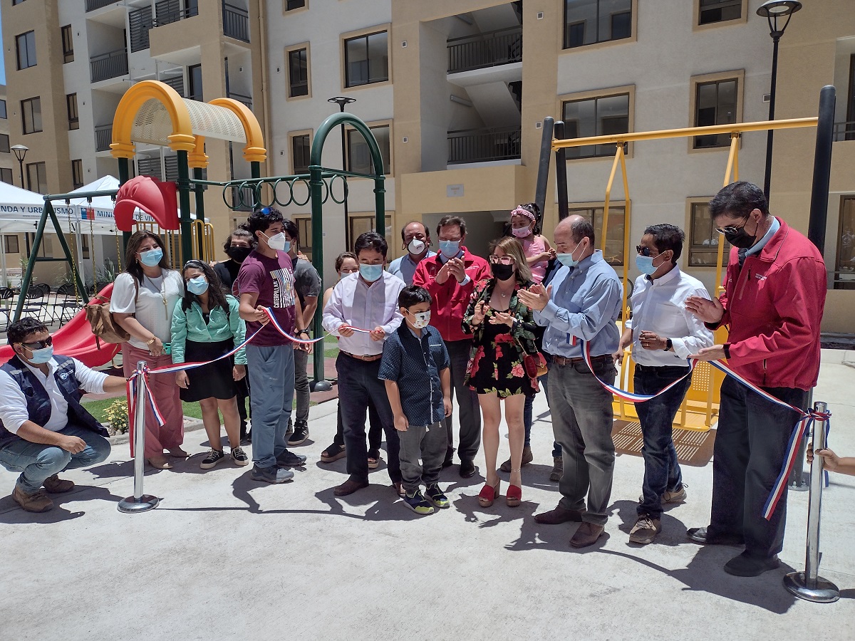 Junto al Gobernador Regional, Miguel Vargas, al Delegado Presidencial (s), Ignacio Urcullú, al SEREMI MINVU y Director SERVIU, y los ejecutivos de PY, conversaron con los beneficiarios, entregaron las llaves a los nuevos propietarios y realizaron el tradicional corte de cinta.