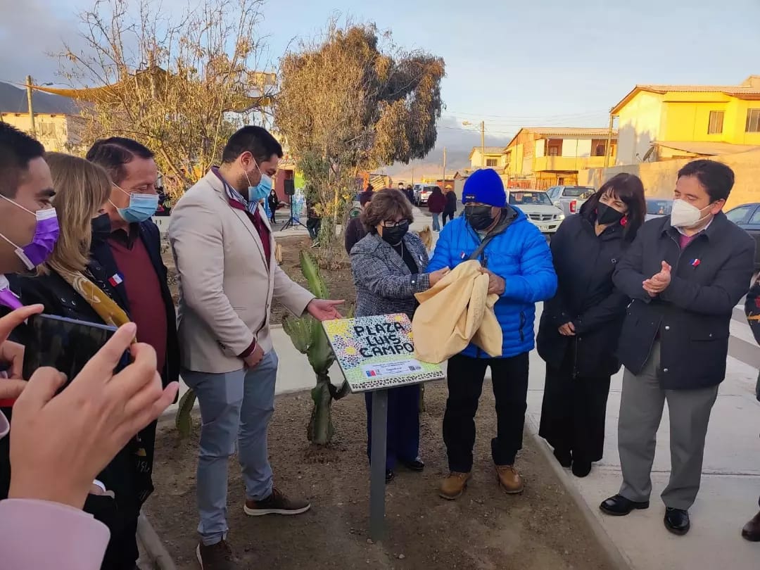 Luis Campos, vecino del sector Aeropuerto Norte, tiene 66 años y vive desde los 12 en Chañaral. Por iniciativa propia cuida, mantiene y riega las áreas verdes existentes en el barrio Aeropuerto Norte, y es justamente por esta razón, que la comunidad reconoció en vida el trabajo que realiza rebautizando este nuevo espacio público con su nombre. Sobre la placa que lleva su nombre y que oficializa la decisión de la comunidad - y respaldada por el municipio local - el homenajeado dijo sentirse "muy contento y orgulloso y además con la responsabilidad de seguir cuidando esta placita que es de todos".