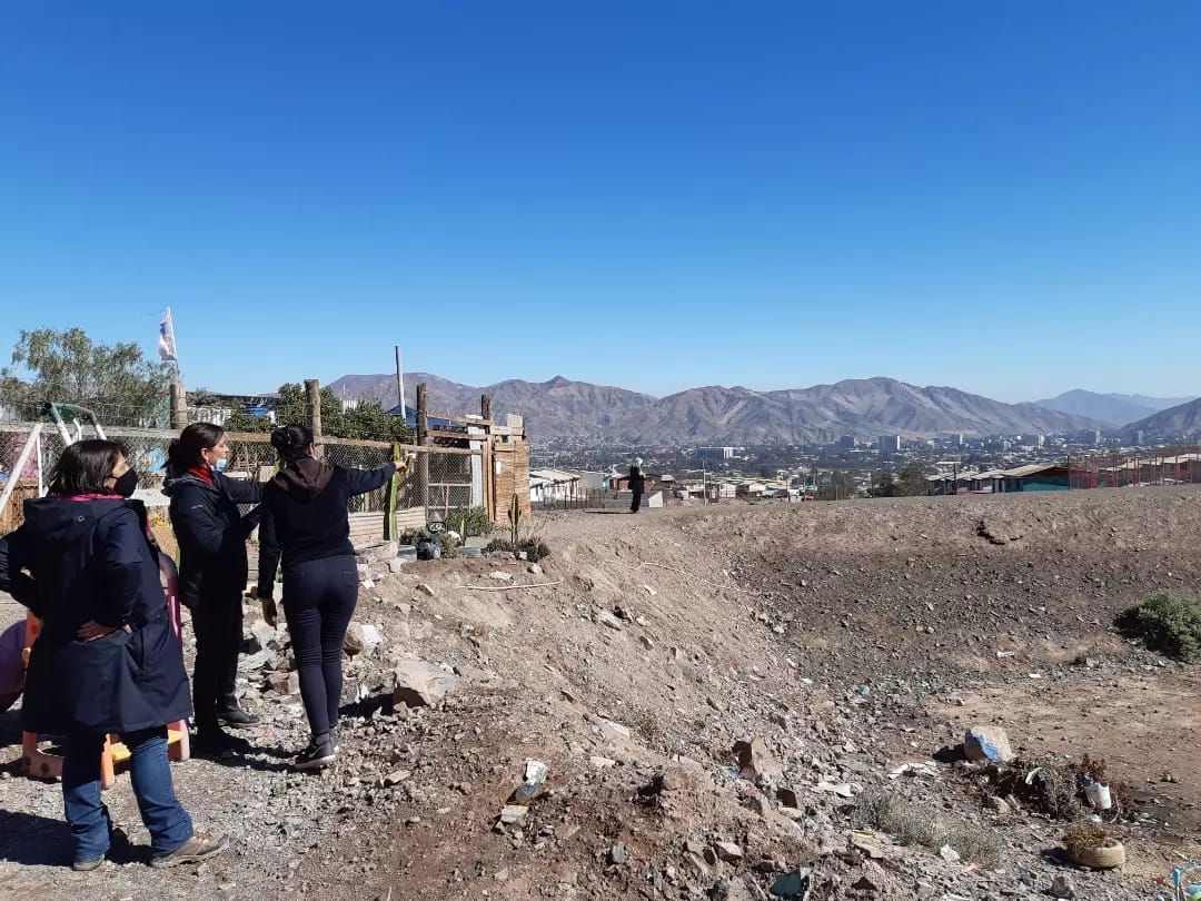 Verificar en terreno la situación de familias que viven en Campamentos junto con revisar el estado de zonas de riesgos y cursos de agua que tomaron las quebradas en la lluvia que afectó a la región de Atacama el pasado viernes, fue el motivo por el que las Seremis Minvu, Rocío Díaz y de Bienes Nacionales, Mónica Marín, recorrieron parte de los asentamientos irregulares ubicados en la comuna de Copiapó. La visita fue realizada junto a los equipos de trabajo del programa Asentamientos Precarios de Serviu y de Reducción de Riesgos y Desastres de Minvu, comenzando en el campamento Villa La Estrella del sector Los Volcanes, para luego trasladarse a los ubicados en los sectores Andacollo y Juan Pablo II.