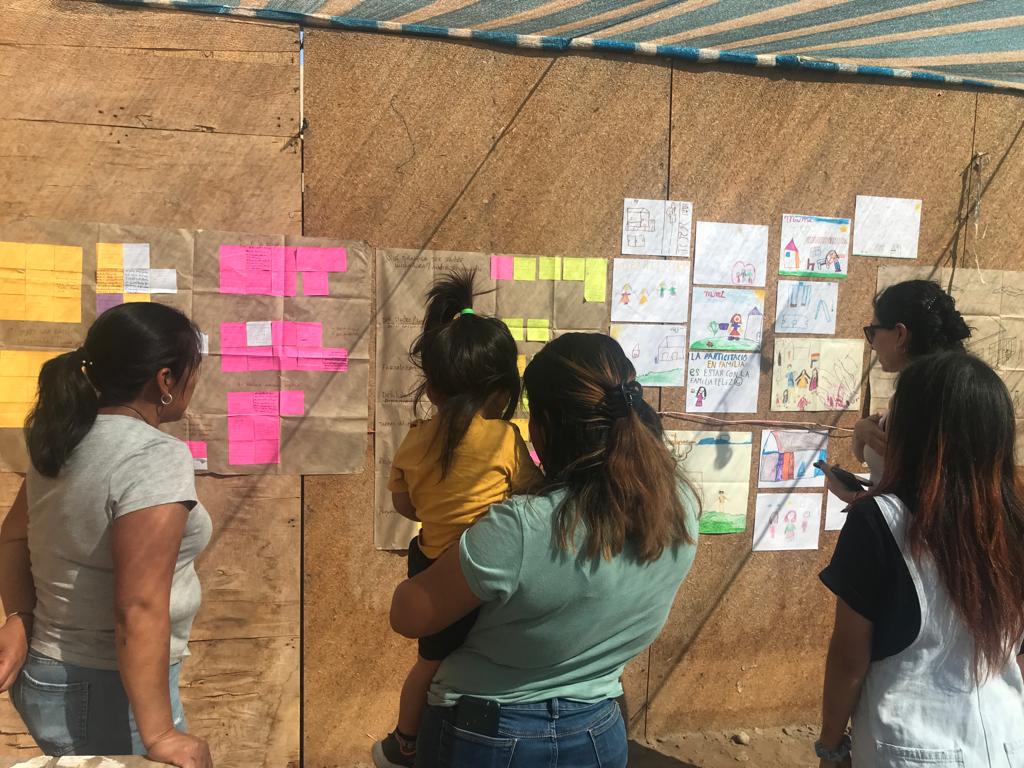 "En estos meses se actualizó el diagnóstico y se generaron distintas acciones con la comunidad, preventivas en caso de riesgo, otras como operativos de salud y, por otro lado, apoyar el desarrollo de entre 20 y 25 niñas y niños. En este contexto se hizo un Diagnóstico de la Niñez, con 12 madres y cuidadoras, para identificar los factores protectores y los de riesgo que los menores identifican en el campamento", sostuvo la coordinadora.