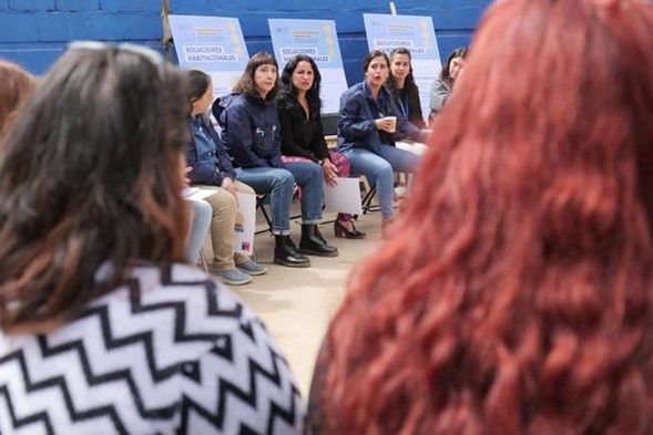 • La coordinadora para la reconstrucción, la subsecretaria de Vivienda y Urbanismo, Tatiana Rojas Leiva, junto a la delegada presidencial Sofía González, y la alcaldesa Macarena Ripamonti, dio a conocer las diferentes opciones para la reparación y reposición según el tipo de daño que presentan las viviendas.