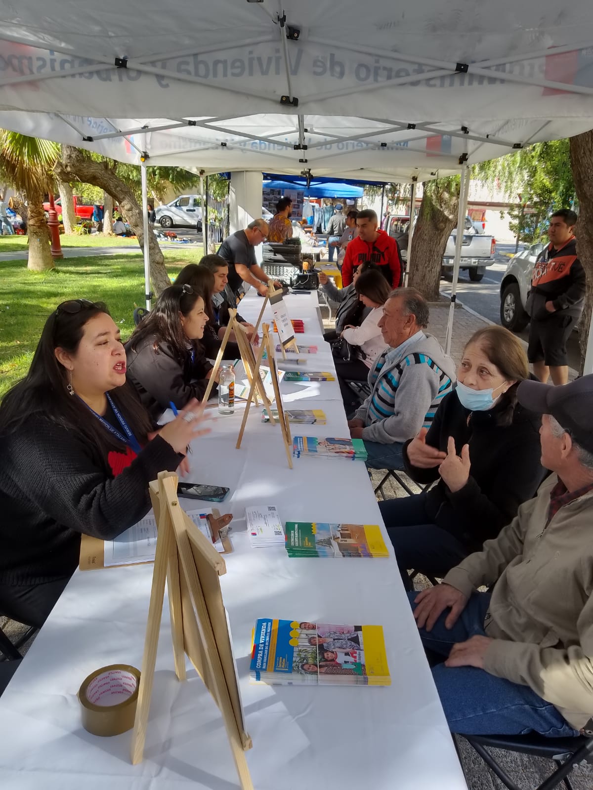 La jornada se realizó en la plaza central de la comuna y contó con la asistencia de la comunidad del sector y también de localidades más alejadas, quienes aprovecharon la presencia de funcionarios/as del Serviu y de la Seremi Minvu, para realizar consultas principalmente enfocadas a la obtención de solución habitacional y las distintas vías que existen hoy para acceder a vivienda definitiva.