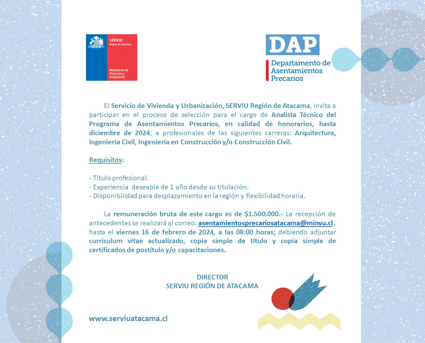 Proceso Selección para el cargo de Analista Técnico del Programa de Asentamientos Precarios