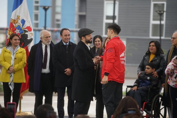 "Nosotros queríamos que este acto fuera un momento de entrega de llaves para las familias, pero también que fuera un momento de destacar a aquellos deportistas, con mayores necesidades, que sacaron medallas de oro o medallas de plata en los juegos panamericanos o para panamericanos", señaló el titular del Minvu.