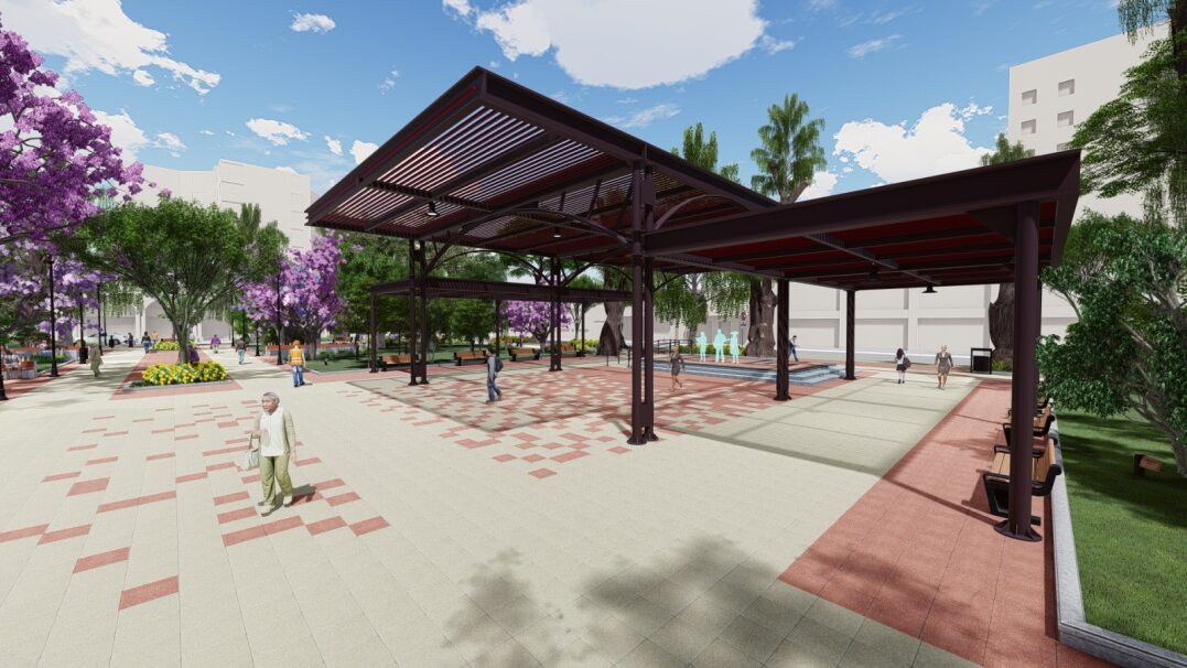 El actual diseño que mejorará la actual Plaza de Armas también incluye una pérgola que aportará sombra y que facilitará la realización de distintas actividades públicas en el sector.
