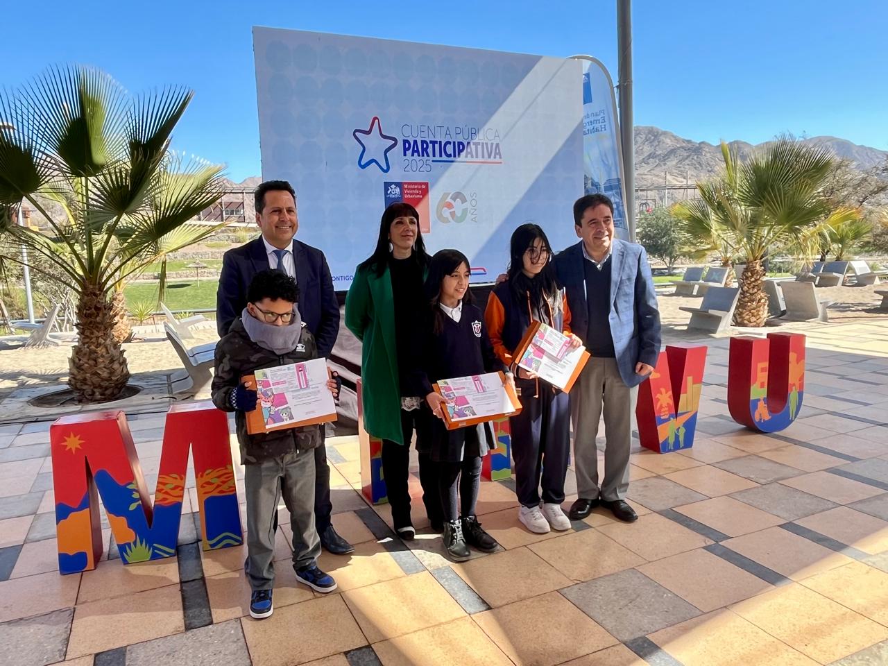 Ambas autoridades aprovecharon la ocasión para entregar las premiaciones a los estudiantes ganadores del concurso "Kaukari en mi retina", junto con agradecer a los asistentes su participación en la Cuenta Pública y al funcionariado de la Seremi Minvu y Serviu por su compromiso en las tareas del Ministerio de Vivienda y Urbanismo.