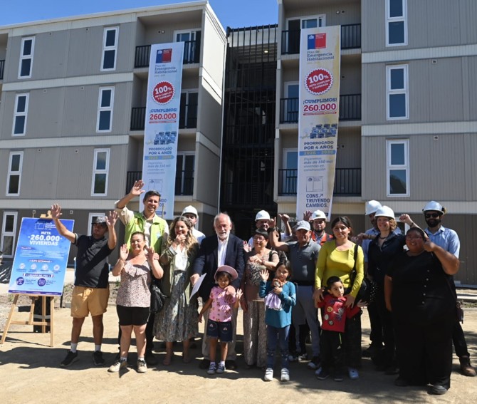 · La actividad se desarrolló en el proyecto "Chincol" de Renca, obra que presenta un 93% de avance y que utiliza tecnología industrializada impulsada por el Minvu para reducir los tiempos de ejecución en más de un 30%. Renca, lunes 02 de marzo de 2026. En el contexto de una visita inspectiva a las obras del proyecto habitacional "Chincol" en la comuna de Renca, el ministro de Vivienda y Urbanismo, Carlos Montes, junto a la subsecretaria de la cartera, Gabriela Elgueta, el alcalde de Renca, Claudio Castro, la alcaldesa de Quinta Normal, Karina Delfino, encabezaron el anuncio oficial del cumplimiento de la meta del Plan de Emergencia Habitacional (PEH). El plan logró entregar exitosamente las 260 mil viviendas comprometidas por el programa de gobierno del presidente Gabriel Boric, permitiendo el acceso a soluciones definitivas y de alto estándar a lo largo de todo el país.